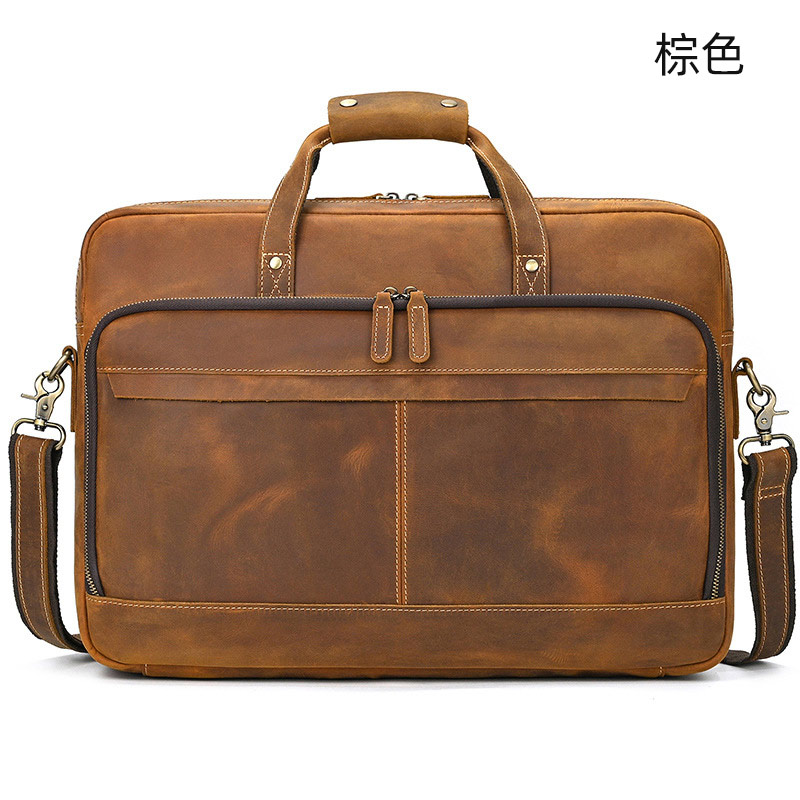 英倫復古頭層牛皮手提包 真皮商務包 17吋筆電包,