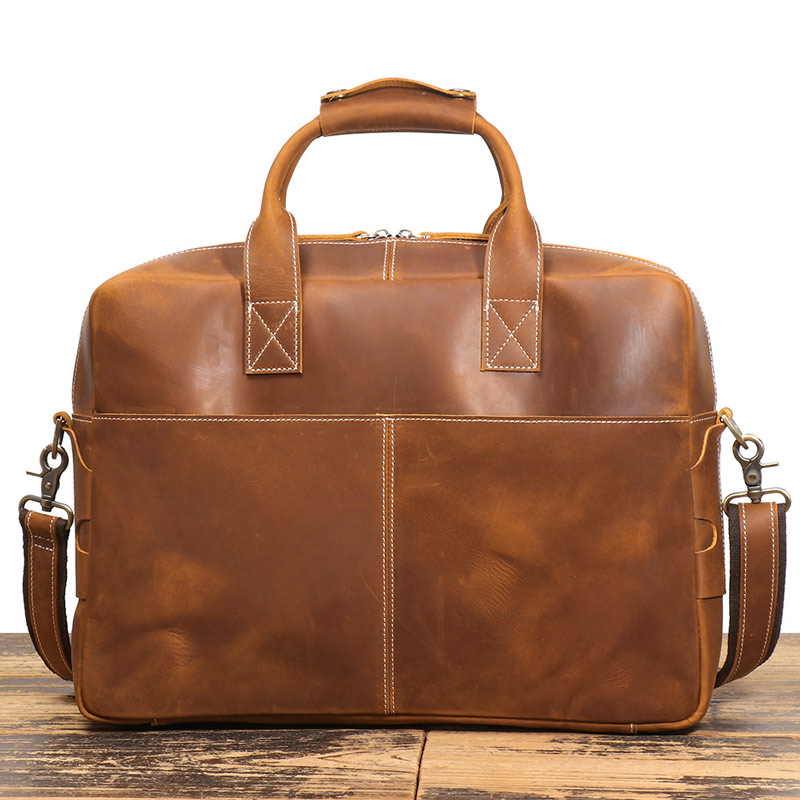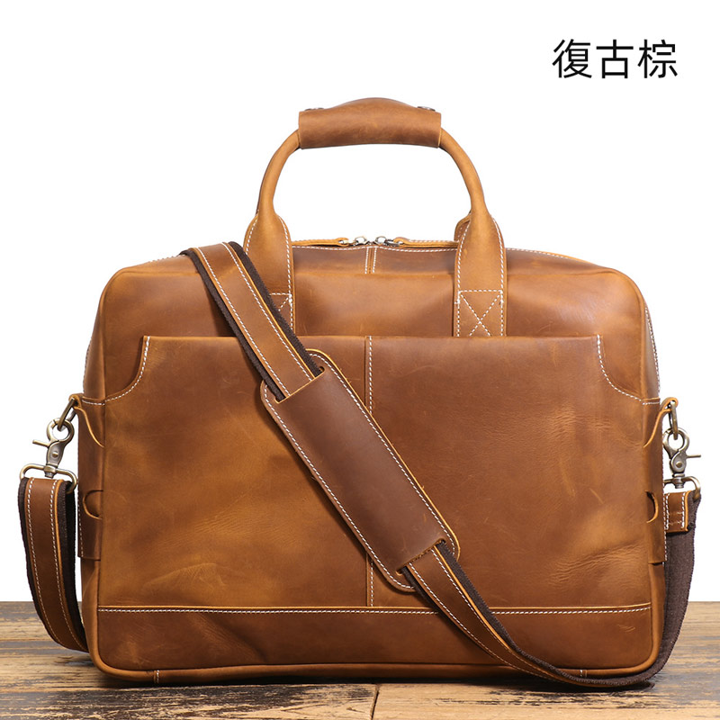 新款復古頭層牛皮手提包 真皮商務包 15吋筆電包,