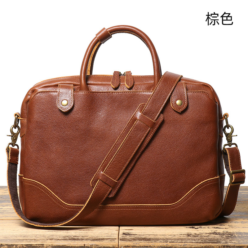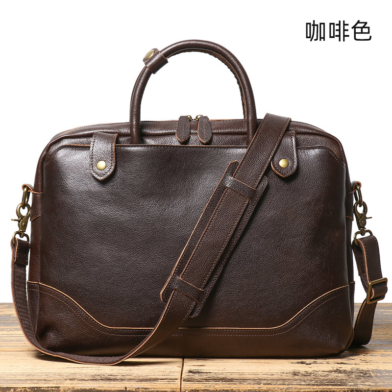 復古公事包 頭層牛皮商務15吋電腦包手提包