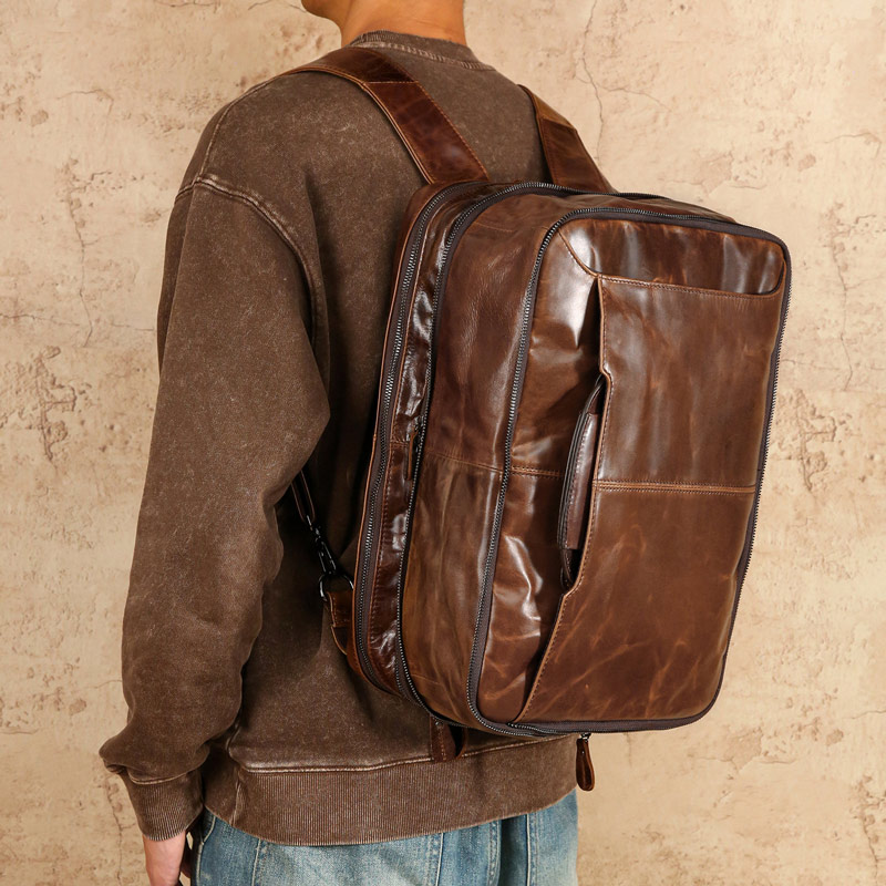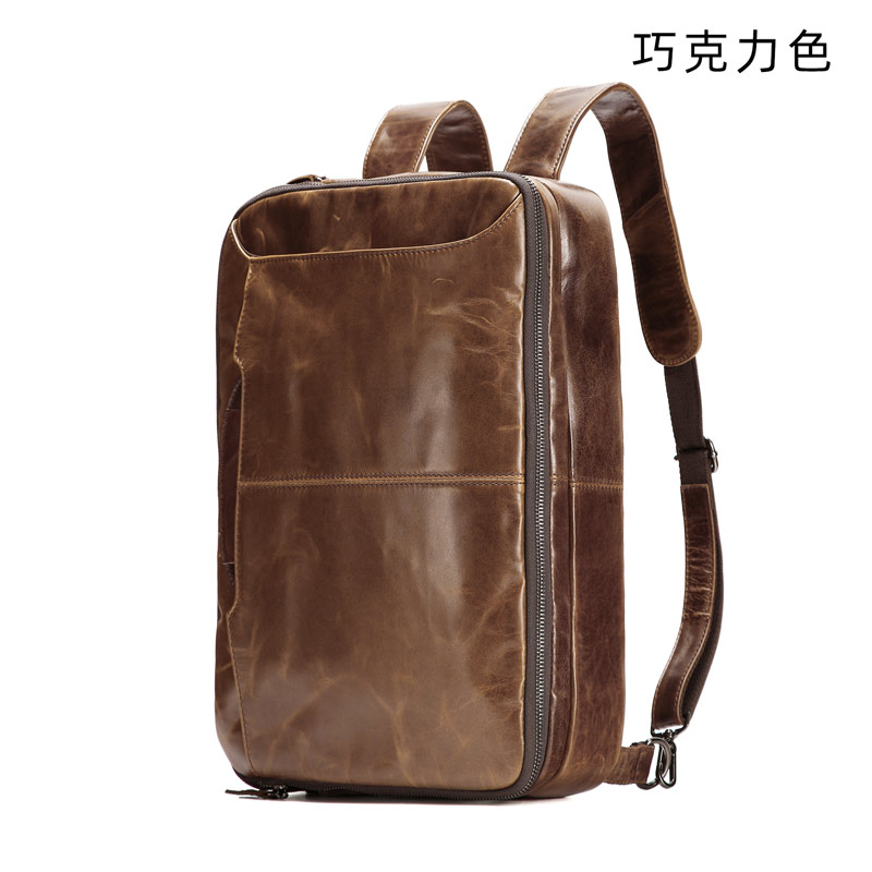 復古大容量可擴容旅行包 頭層牛皮後背包