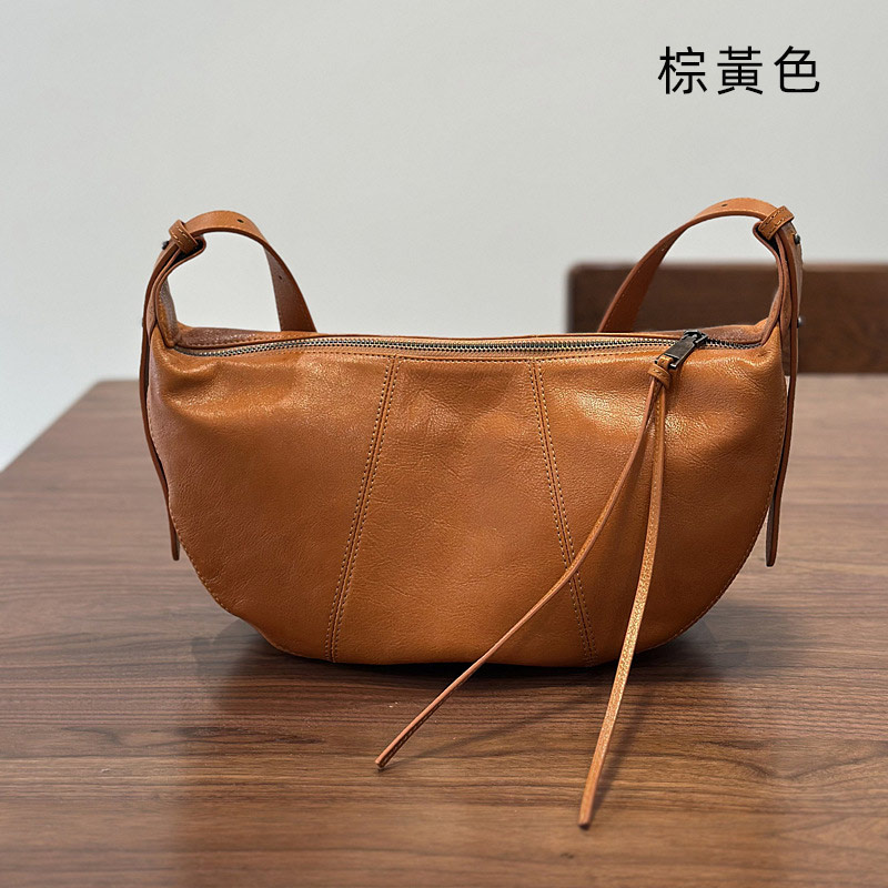 真皮月牙包 女式斜背包 頭層樹膏牛皮流蘇高級感馬鞍包