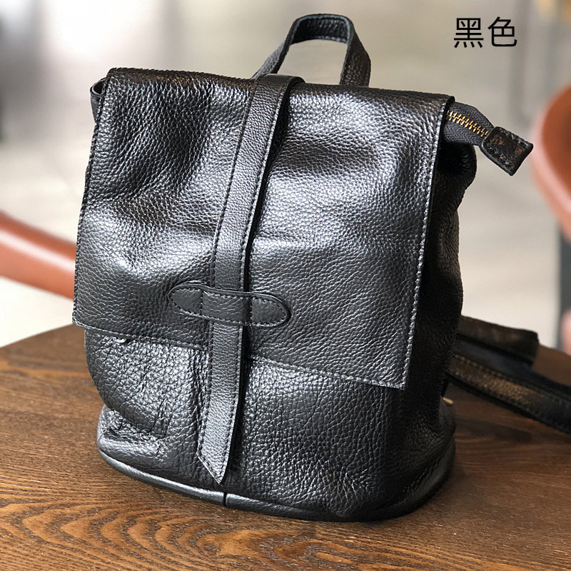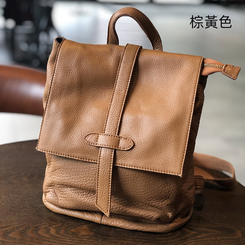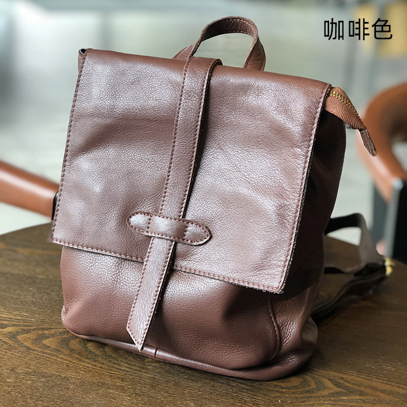多口袋軟皮女生後背包 頭層牛皮雙肩包