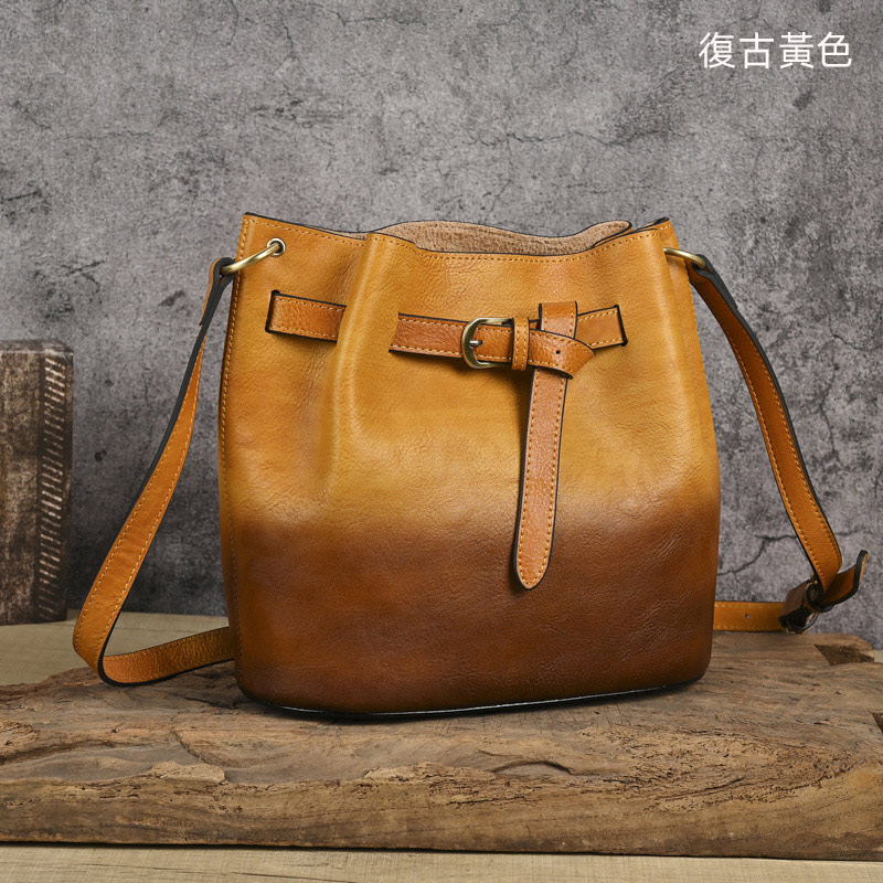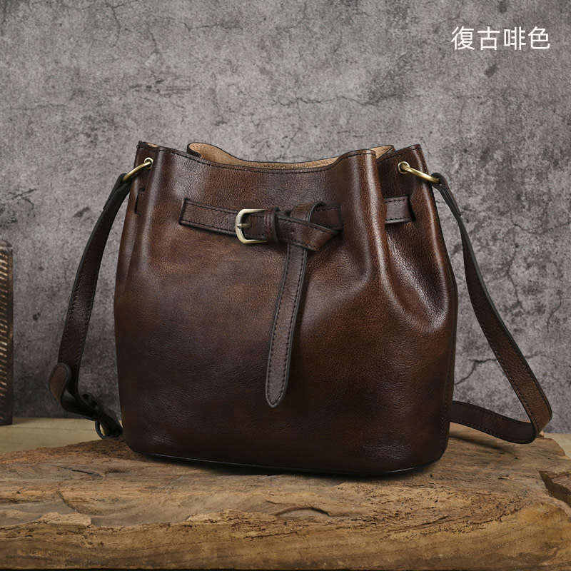 女生擦色水桶包 真皮女包單肩背包推薦