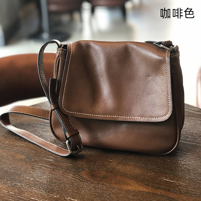 真皮復古斜背包 新款翻蓋包復古單肩包郵差包