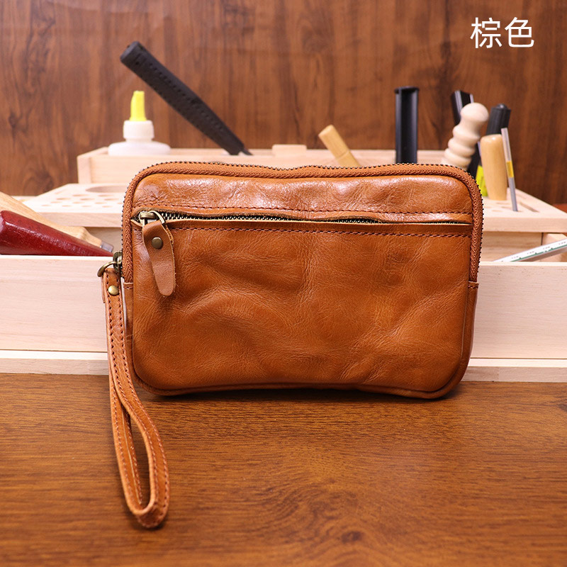 復古手工手機包 頭層牛皮零錢包 植鞣皮女生小方包