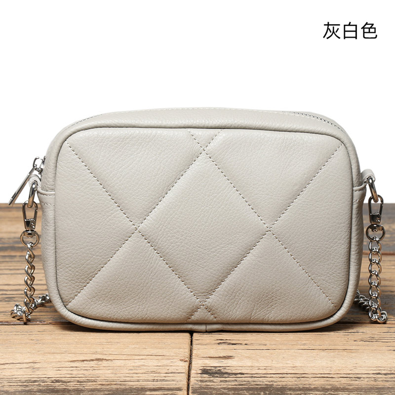 女生斜背包 頭層牛皮鏈條包 真皮菱格包