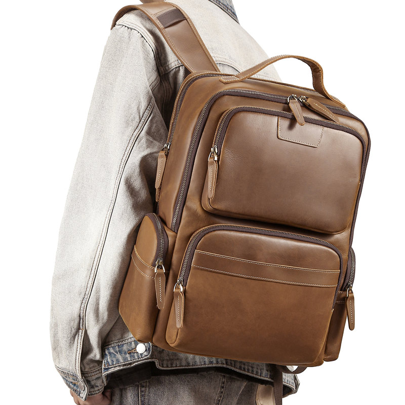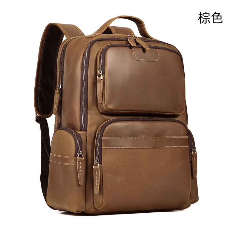 歐美新款瘋馬皮後背包 透氣減壓背負新款頭層牛皮旅行包