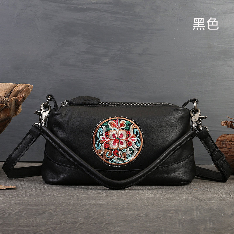 復古頭層牛皮刺繡包 真皮枕頭包 女生斜背包