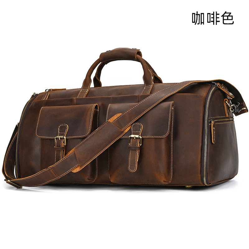 復古大容量頭層牛皮旅行包 真皮包包