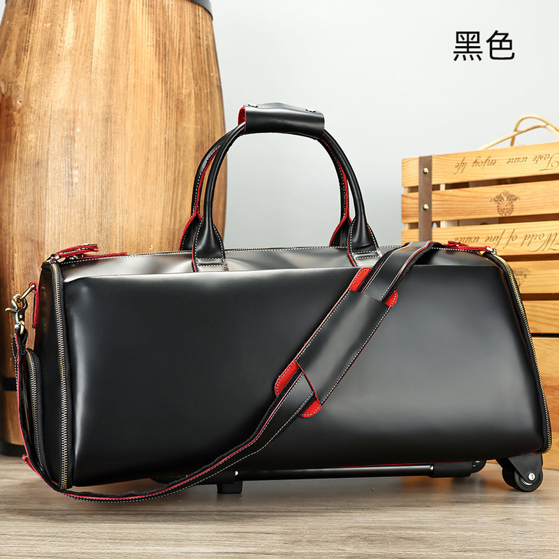復古帶滑輪瘋馬皮旅行包 男士真皮大容量包包