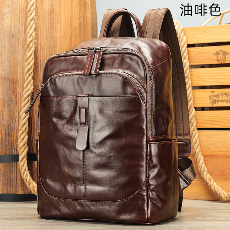 頭層牛皮油皮旅行背包 商務真皮後背包