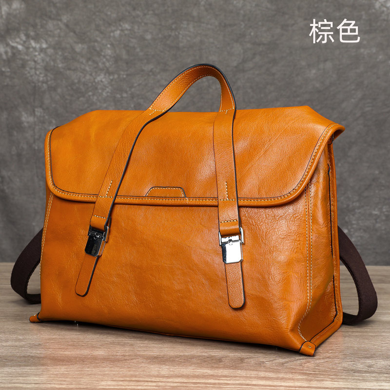 多功能頭層牛皮男女後背包手提包,新品橫款包蓋式學生書包