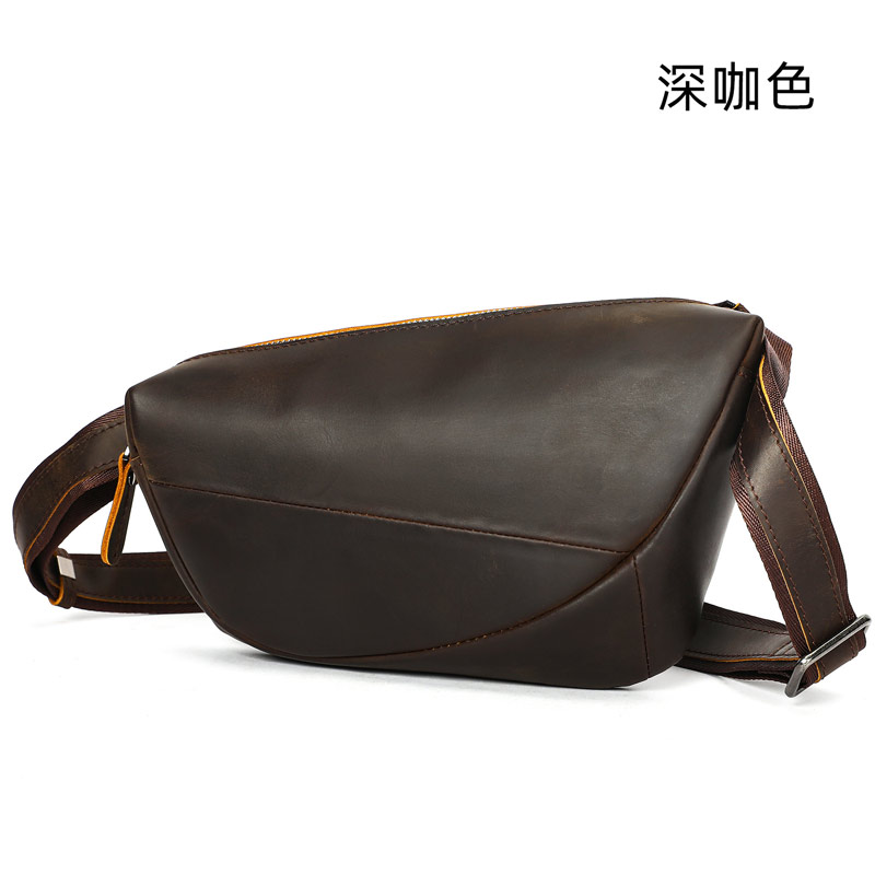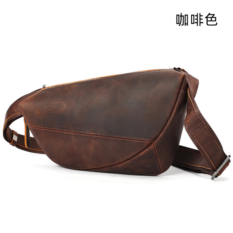 復古擦色胸包 瘋馬皮腰包 男士斜背包 頭層牛皮單肩斜挎背包