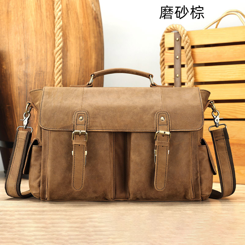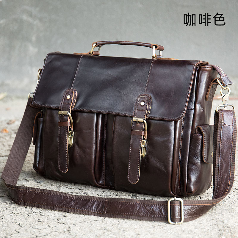 復古頭層牛皮公事包 商務電腦包 男士斜背包