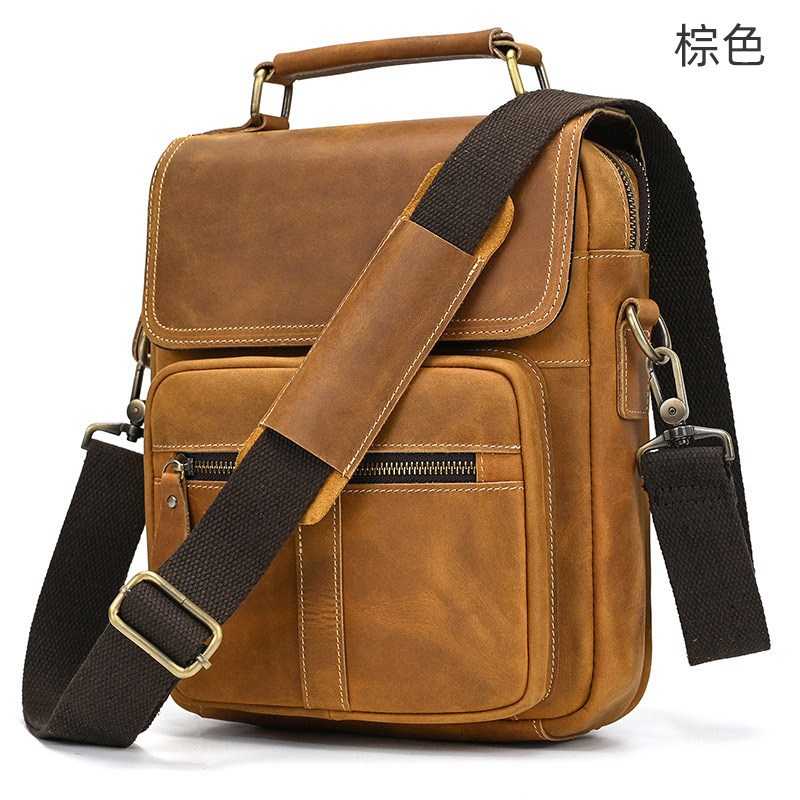 復古瘋馬皮斜背包 新款真皮男包側背包ipad包