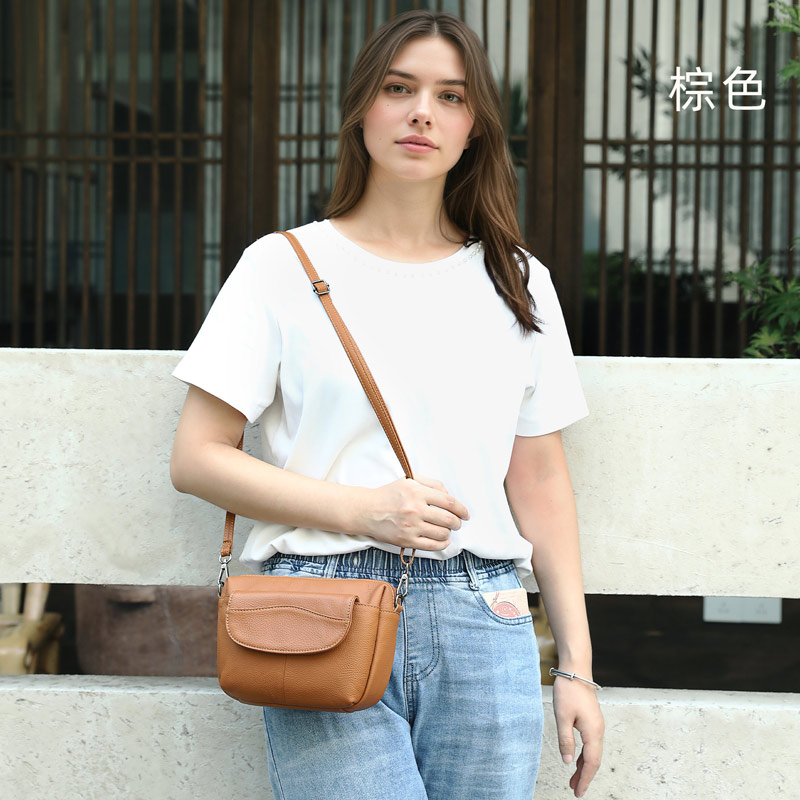 女生斜背包 頭層牛皮斜跨包 真皮小方包