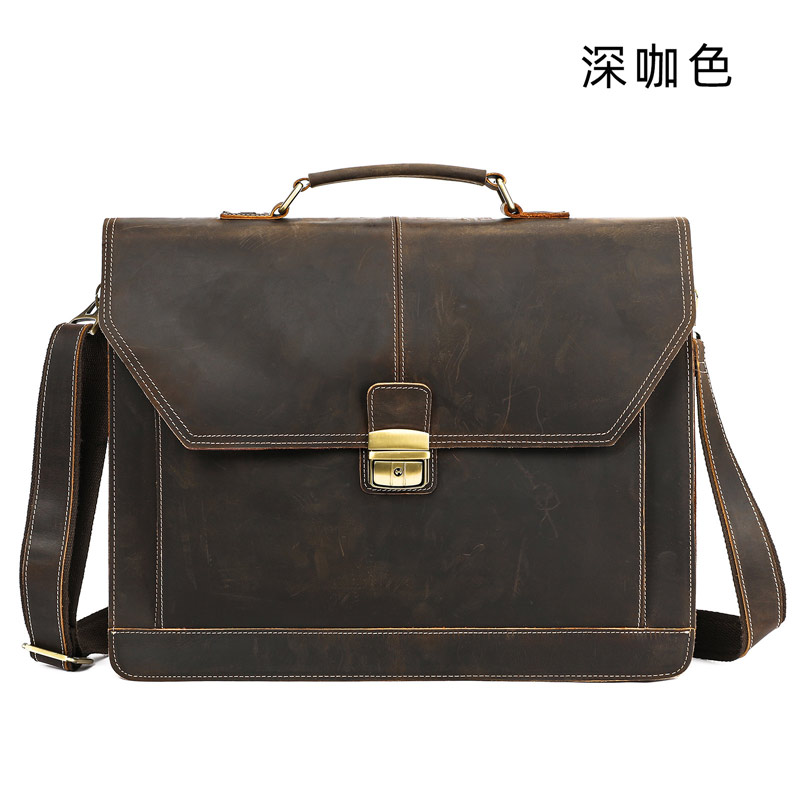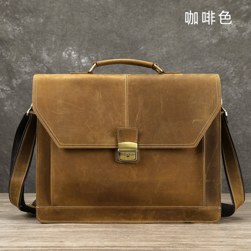 瘋馬皮公事包,高檔大氣斜背包手袋 真皮包包公文包推薦