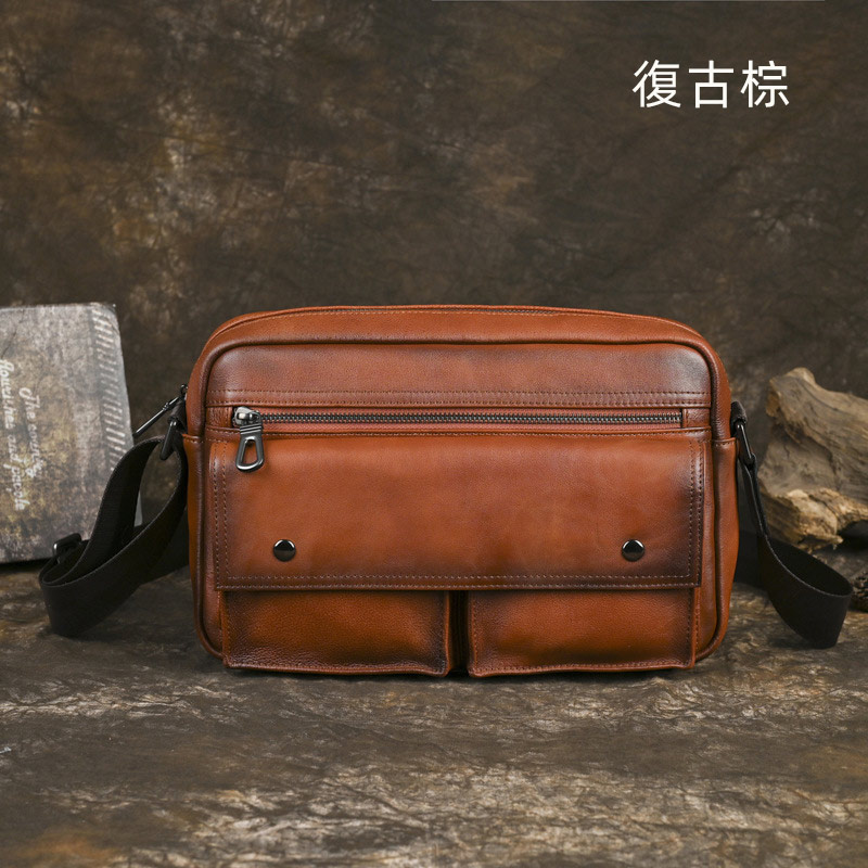新款植鞣皮斜背包 復古真皮男包側背包ipad包