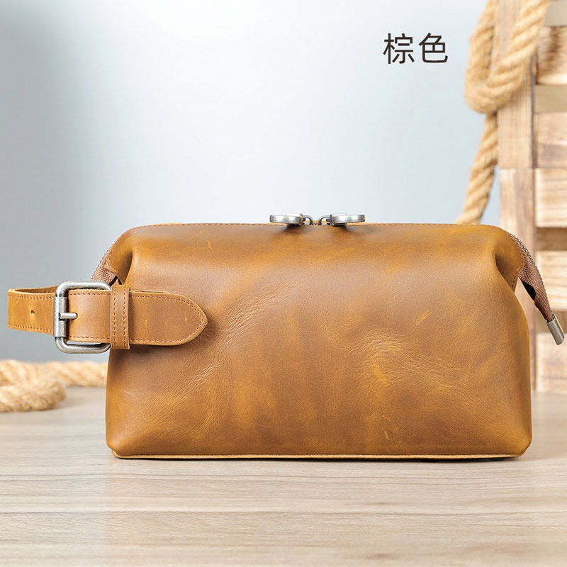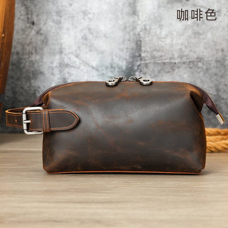 復古頭層瘋馬皮洗漱包 男士手拿包