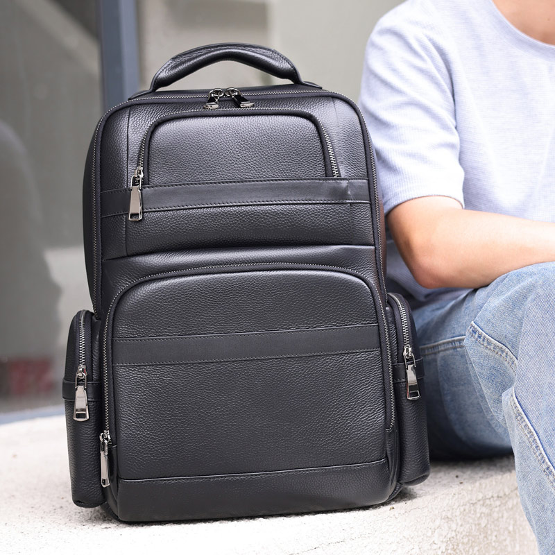 商務16吋筆電包 大容量頭層牛皮雙肩背包 真皮男包 學生書包推薦