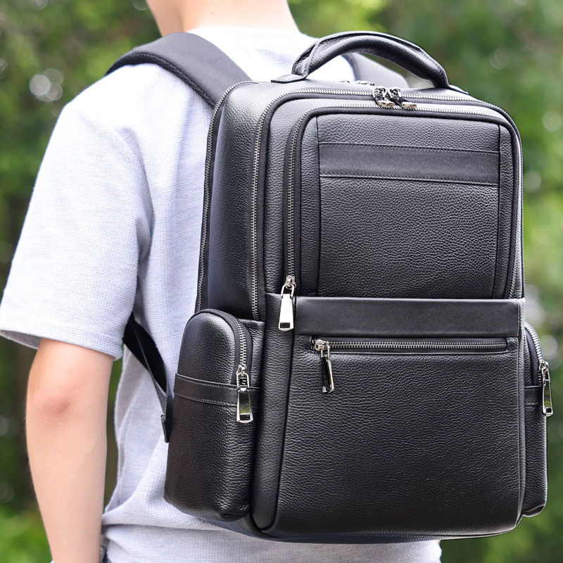 商務16吋筆電包 高級感頭層牛皮雙肩背包 真皮男包 學生書包推薦