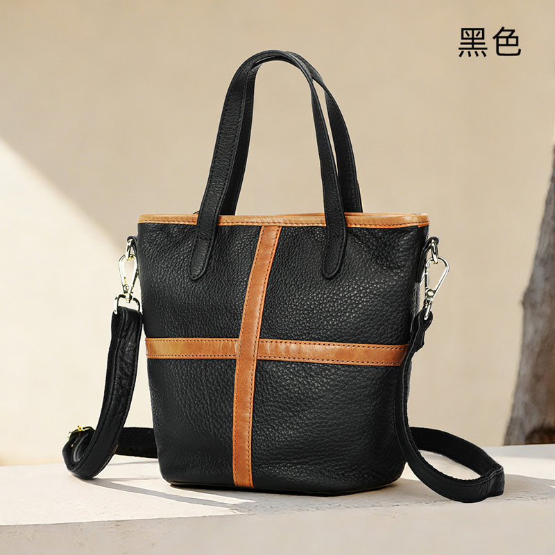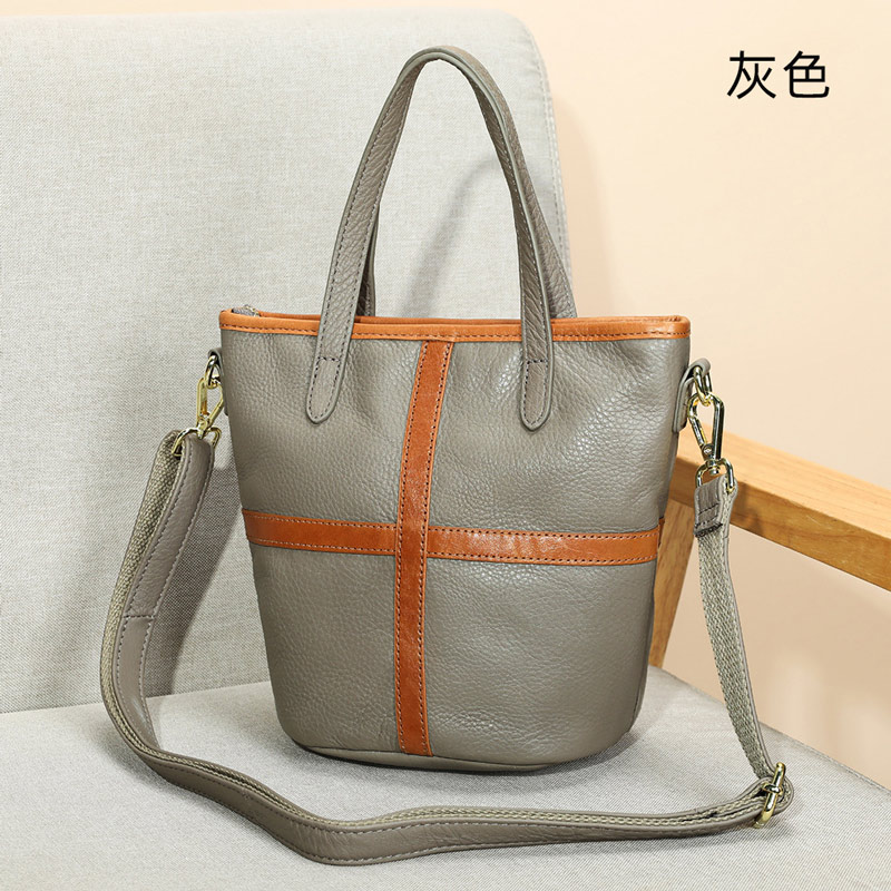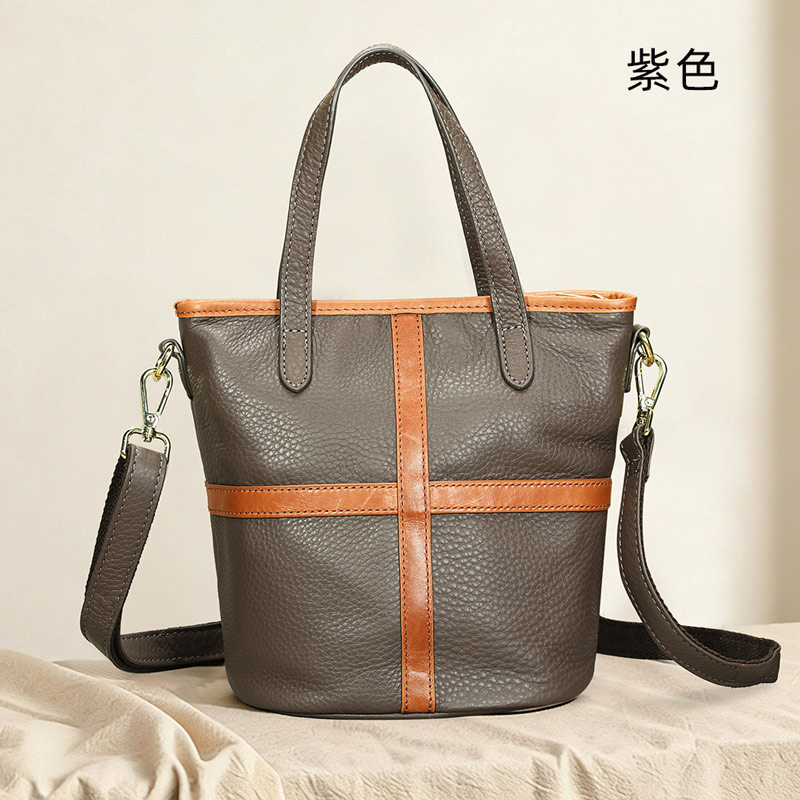 新款氣質手提包 頭層牛皮女生包包 真皮斜背包水桶包手袋