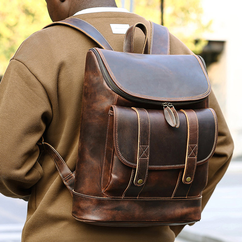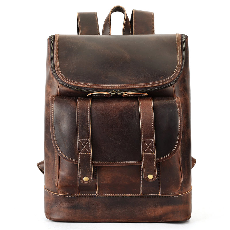 復古大容量歐美頭層牛皮後背包,瘋馬皮旅行包