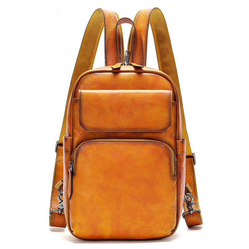 復古新款兩用包包 擦色胸包 潮流斜背包頭層牛皮胸前包