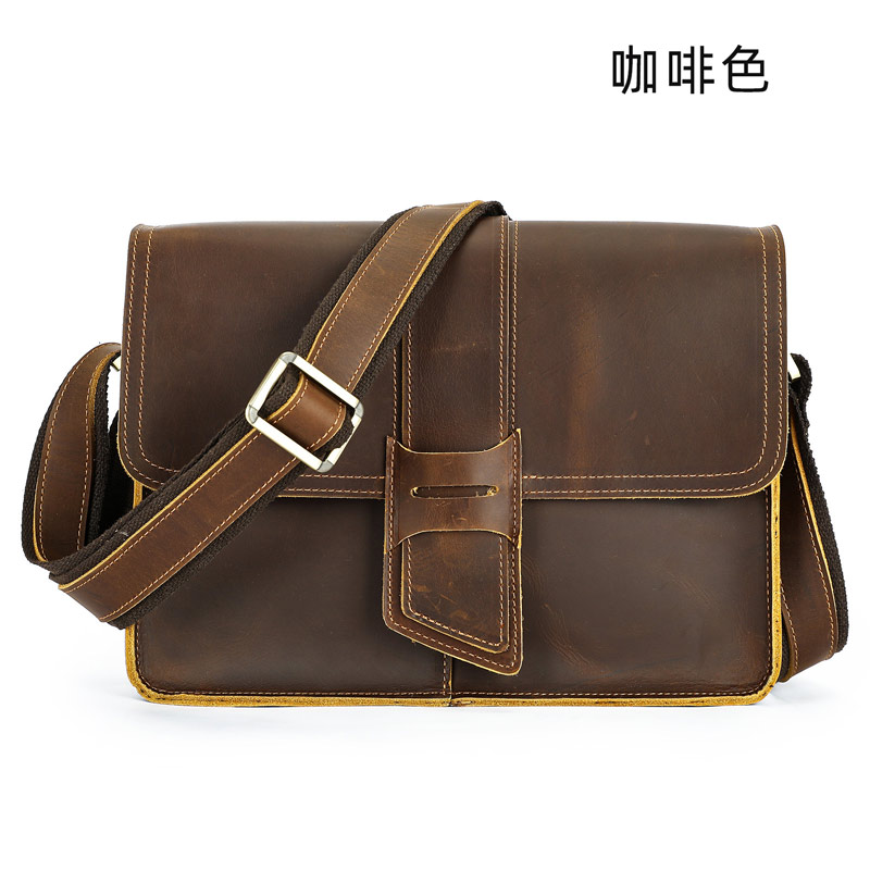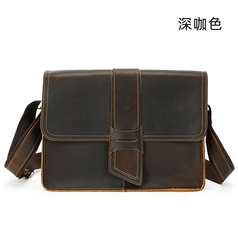 新款瘋馬皮斜背包 真皮男包 橫款磁扣設計感小方包ipad包推薦