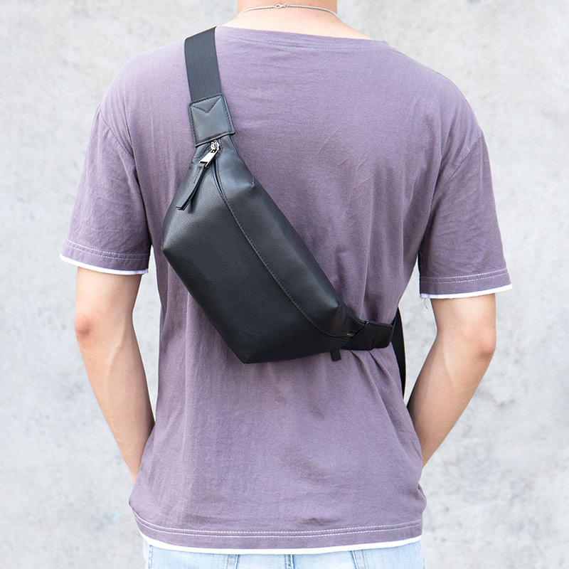 男士休閒胸包腰包 真皮斜背包 真皮胸前包