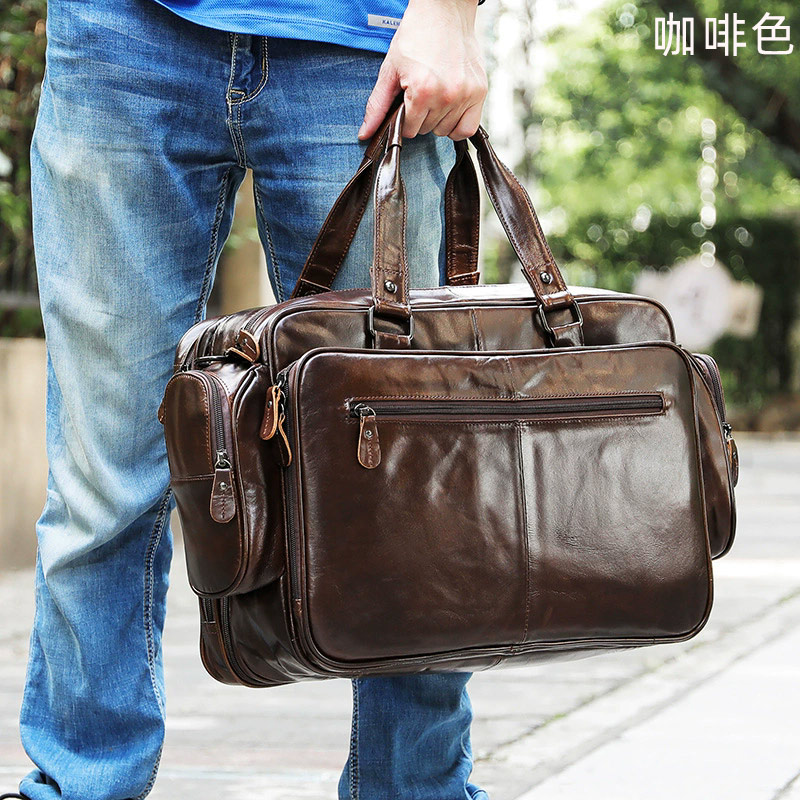 復古頭層牛皮多功能手提包 油蠟皮公事包