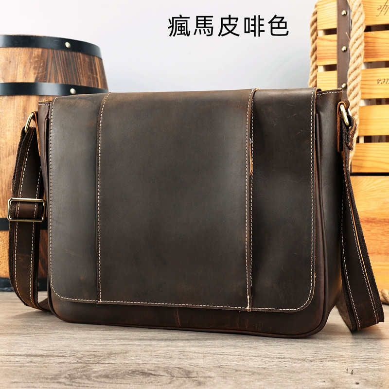 兩種材質:復古頭層牛皮男士肩背包 真皮斜挎郵差包