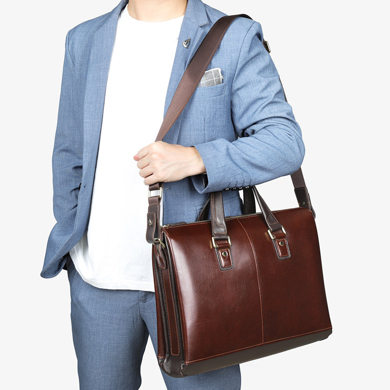 頭層牛皮男士手提包 高級感真皮斜挎包 商務男用包包