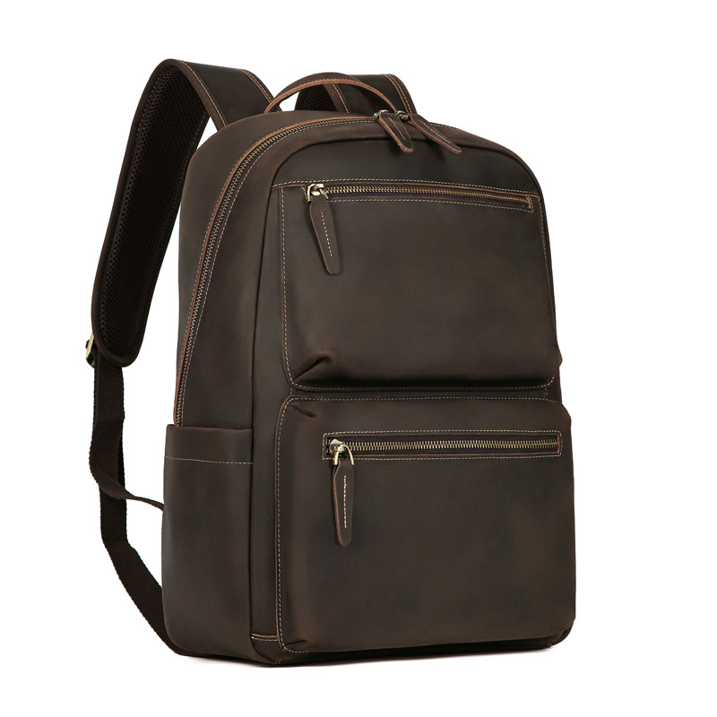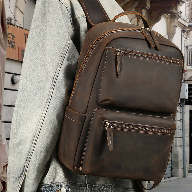 復古大容量瘋馬皮後背包 真皮電腦背包