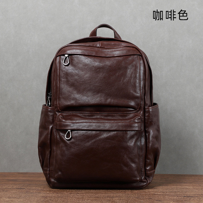 植鞣皮擦色旅行後背包 商務頭層牛皮雙肩背包