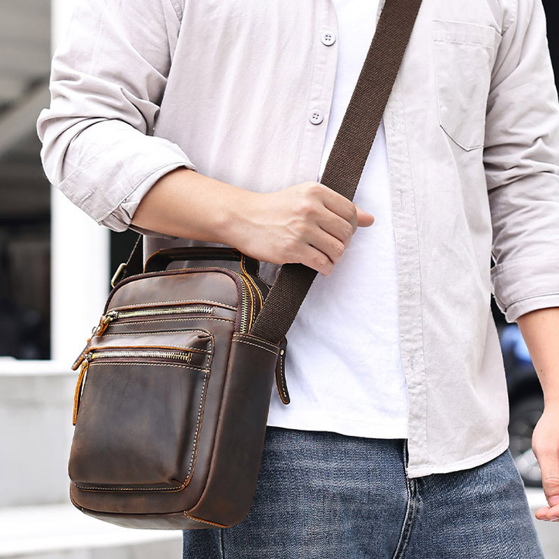新款瘋馬皮小方包斜背包 真皮男包側背包ipad包推薦