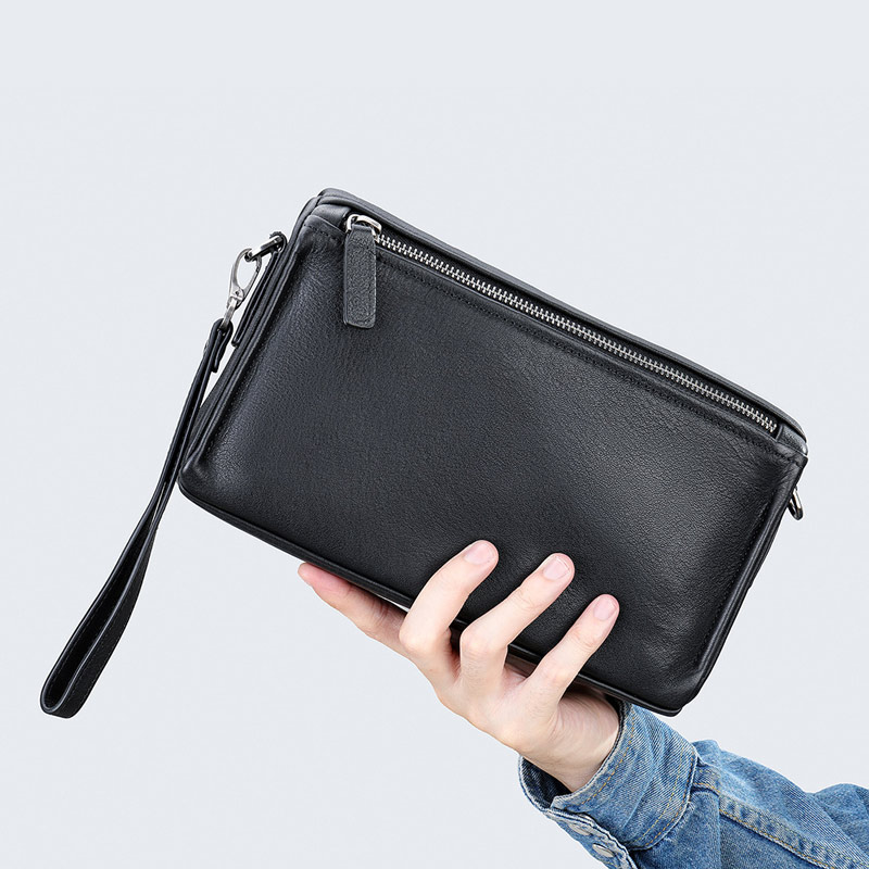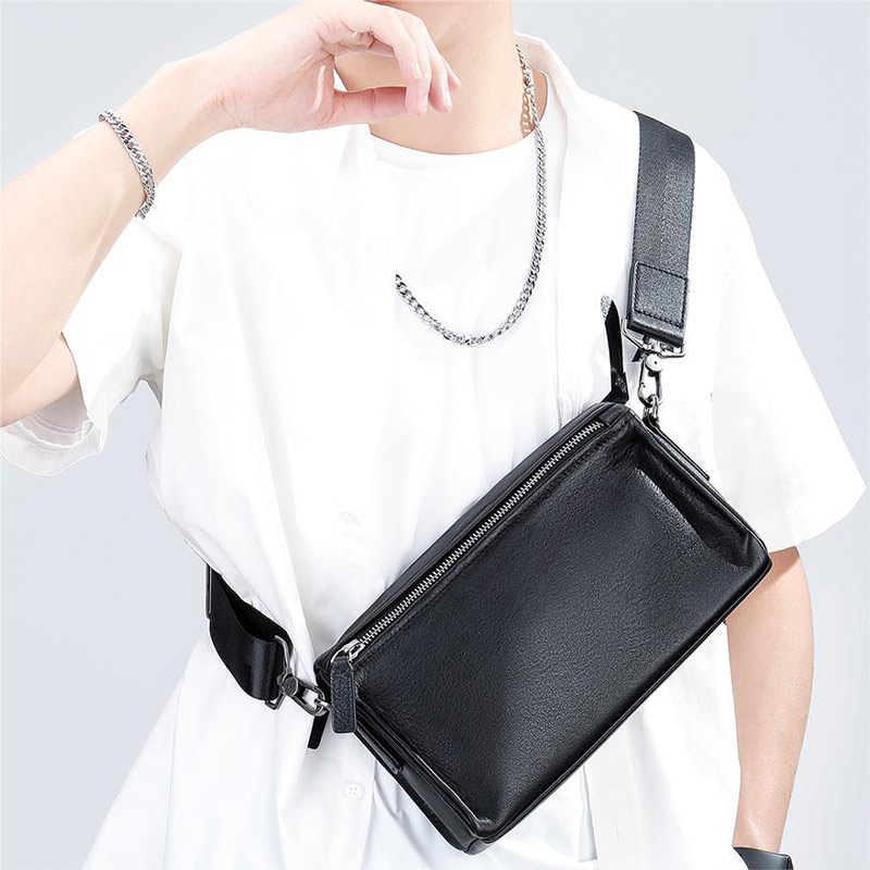 男士休閒胸包手拿包 真皮斜背包 真皮胸前包