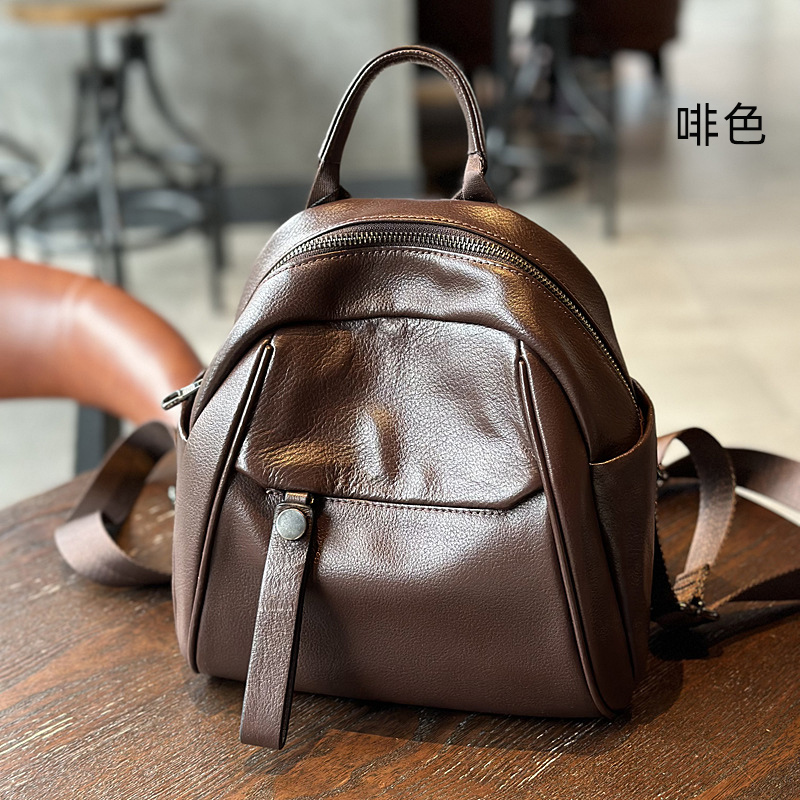新款頭層牛皮後背包 女生學生書包小背包