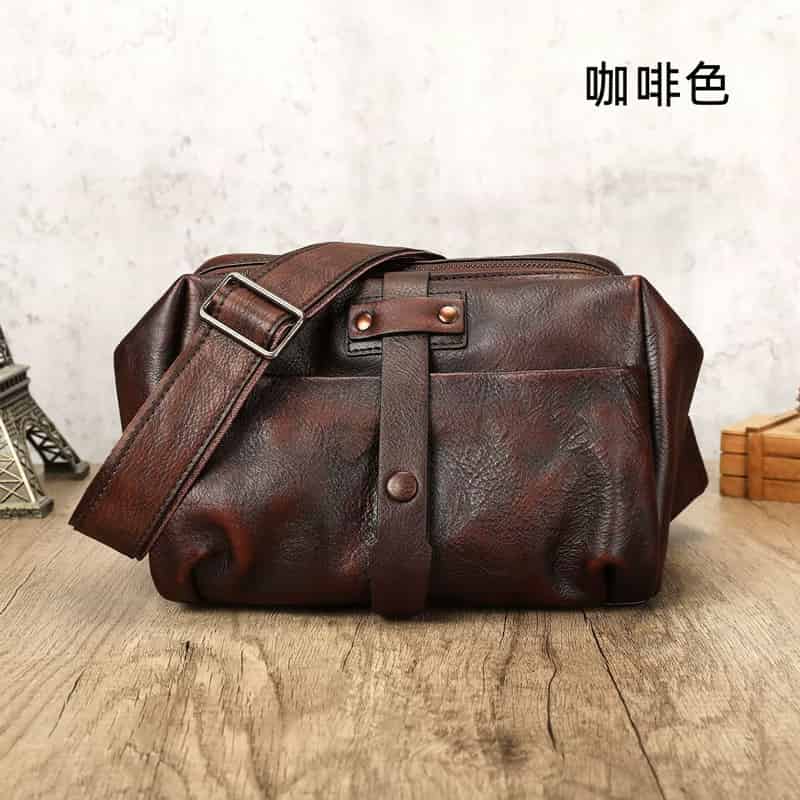 新款瘋馬皮斜背包 真皮男包側背包推薦