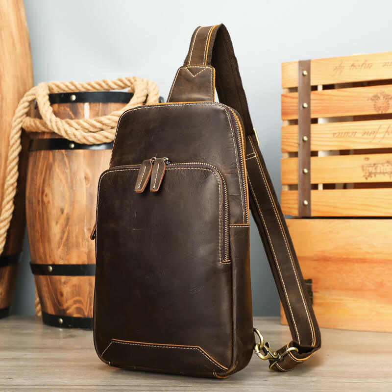 頭層牛皮胸前包手機背包 潮流時尚運動背包 休閑包包推薦