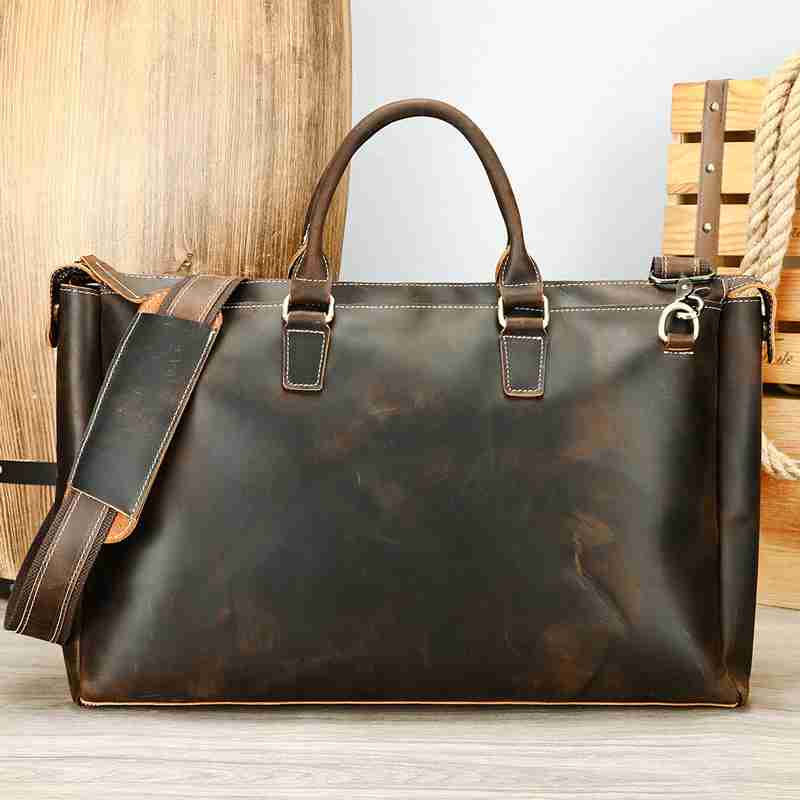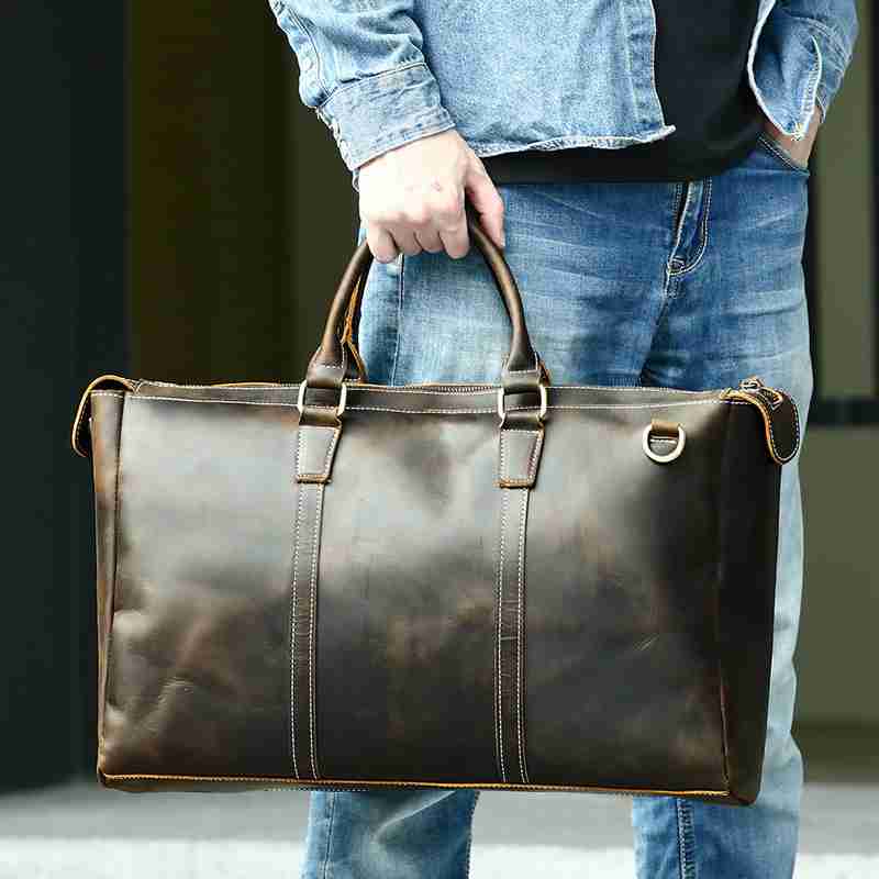 復古頭層牛皮旅行包 大容量手提包 真皮商務包